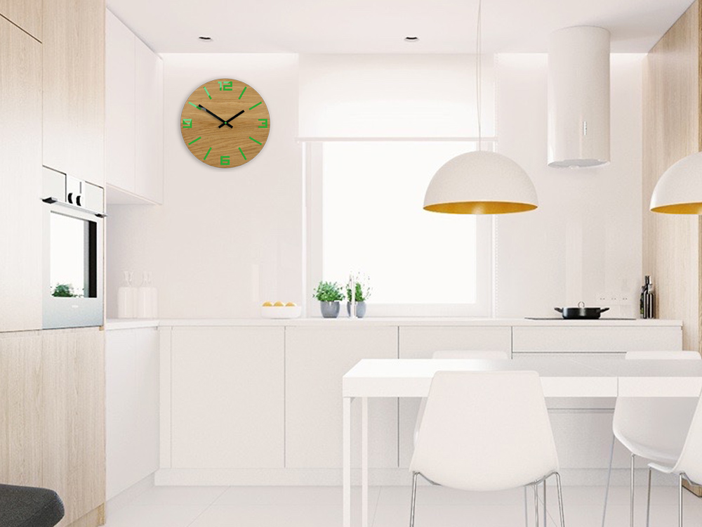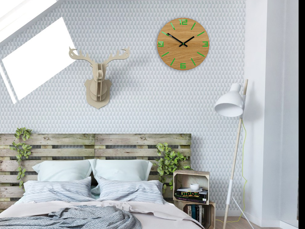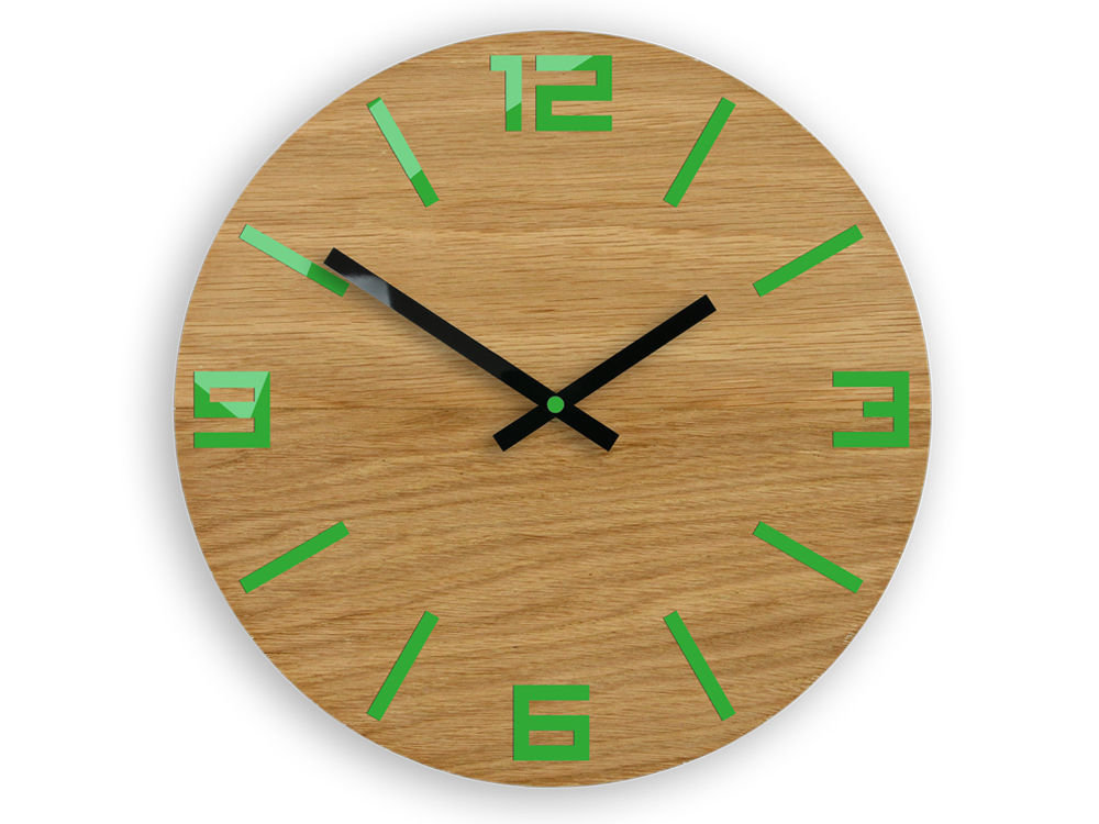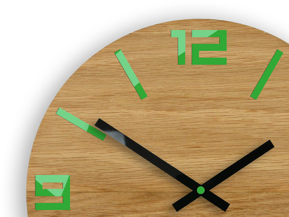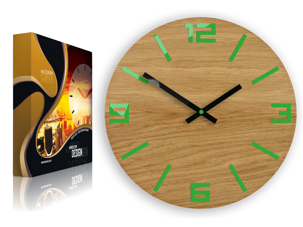 NOWOCZESNY ZEGAR ŚCIENNY DĄB ARABIC ZIELONY NOWOŚĆ