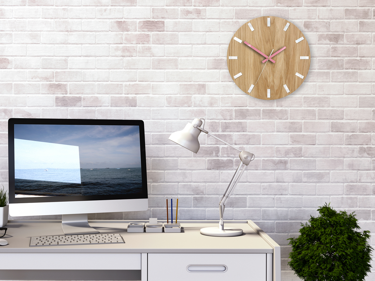 ZEGAR DREWNIANY DĄB SIMPLE BIAŁO-RÓŻOWY -PIEKNY