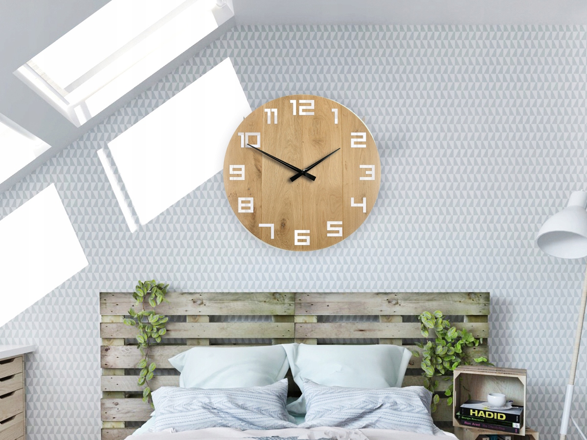 Zegar ścienny został wykonany z 3mm drewna dębowego oraz 10mm płyty mdf, jest masywny i dopracowany w każdym calu. Nadaje mu to bardzo elegancki i szykowny charakter. Z kolei tak modny dziś i chętnie wybierany drewniany zegar nawiązuje do natury i stylu skandynawskiego.