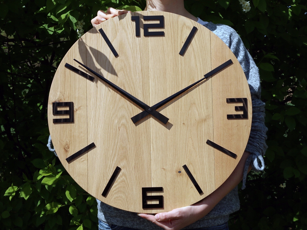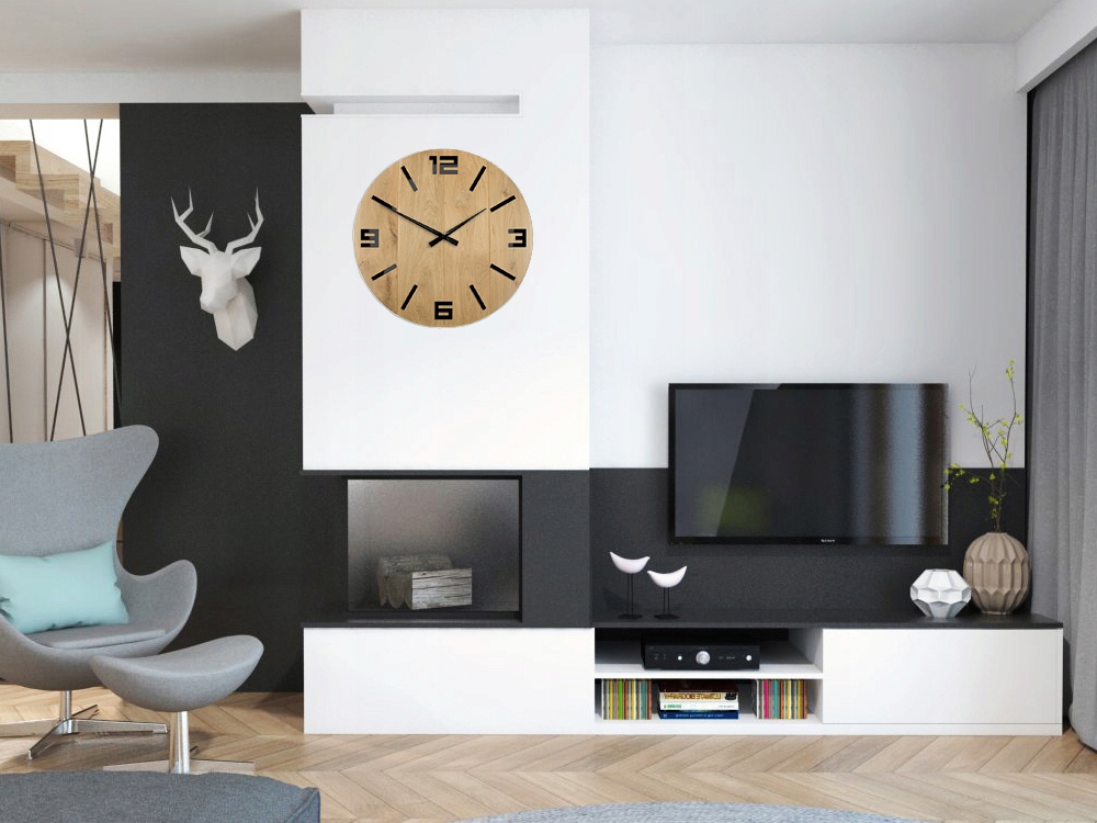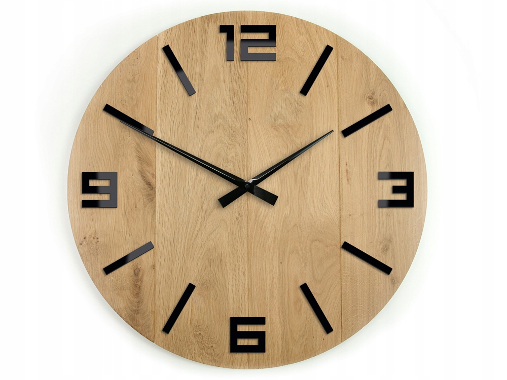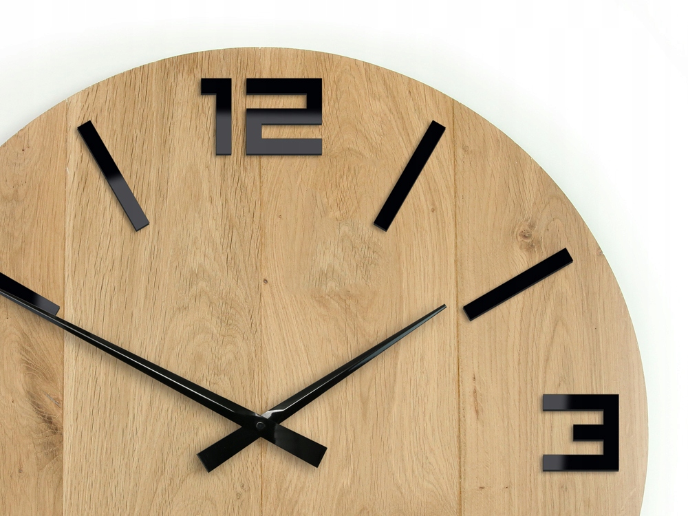 Zegar ścienny został wykonany z 3mm drewna dębowego oraz 10mm płyty mdf, jest masywny i dopracowany w każdym calu. Nadaje mu to bardzo elegancki i szykowny charakter. Z kolei tak modny dziś i chętnie wybierany drewniany zegar nawiązuje do natury i stylu skandynawskiego.