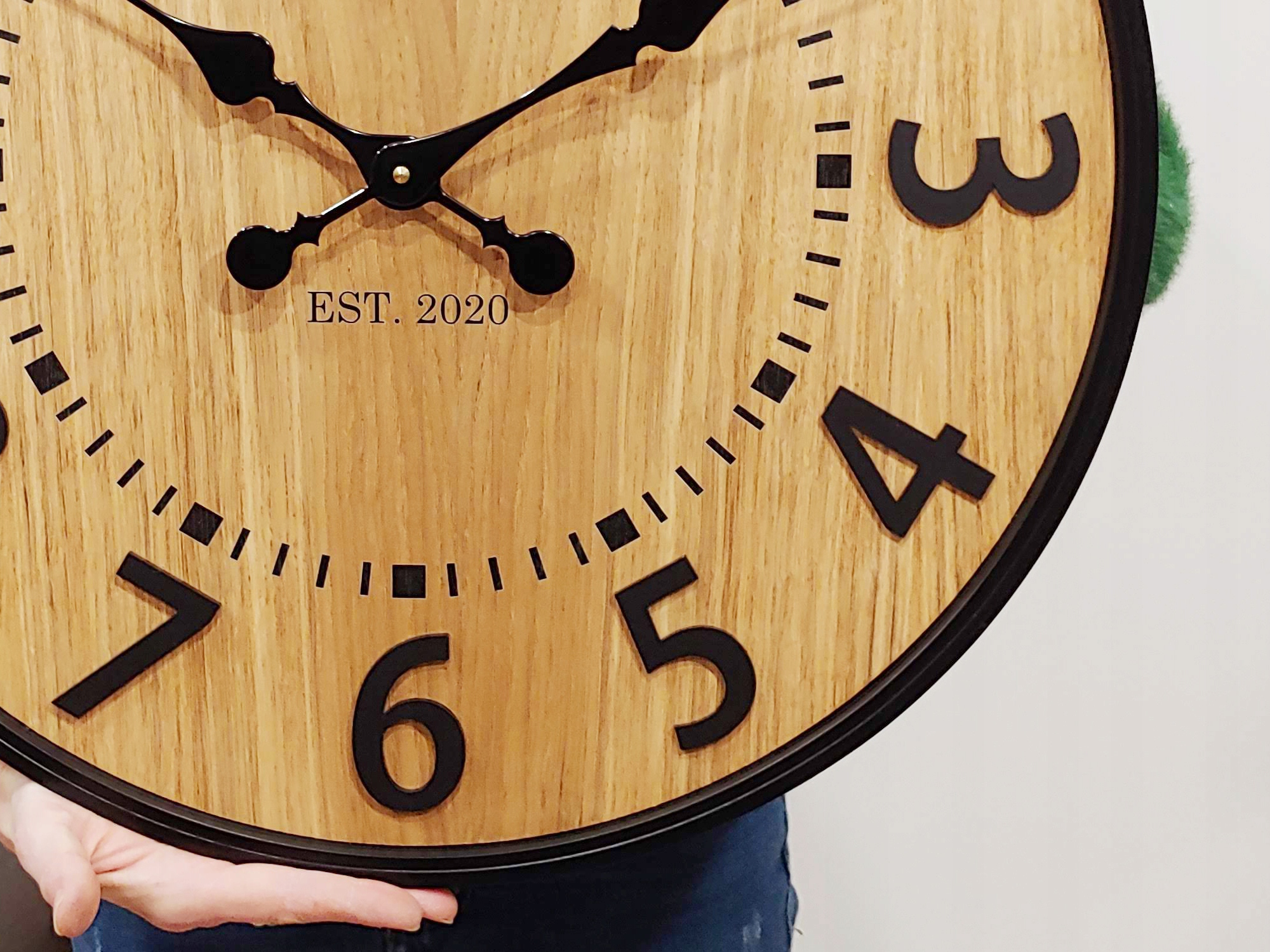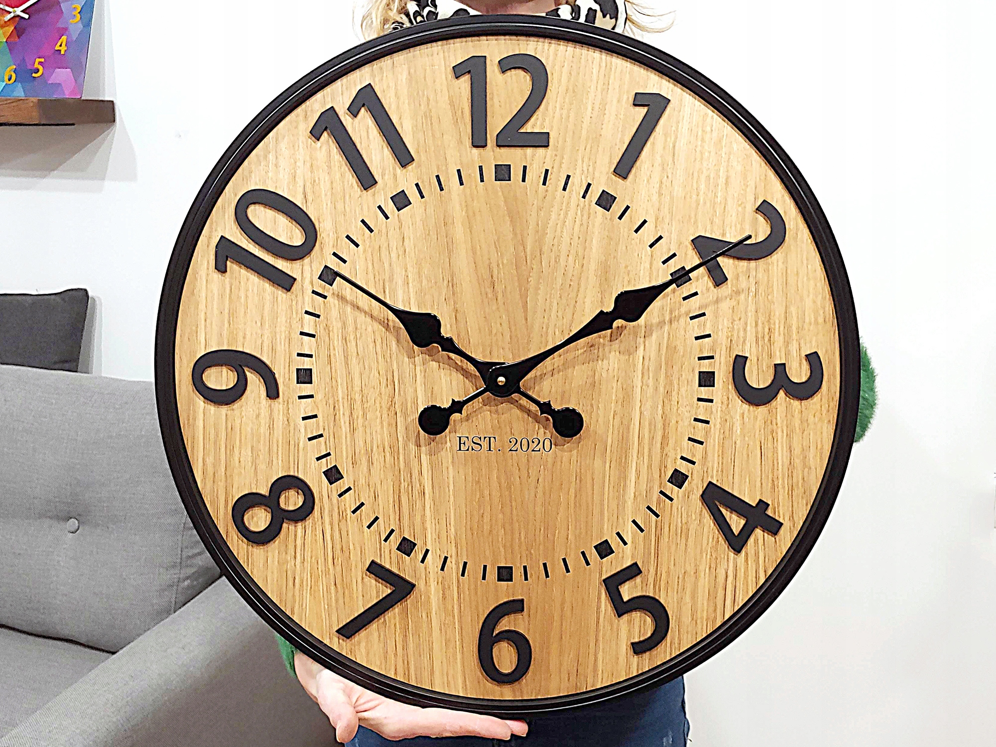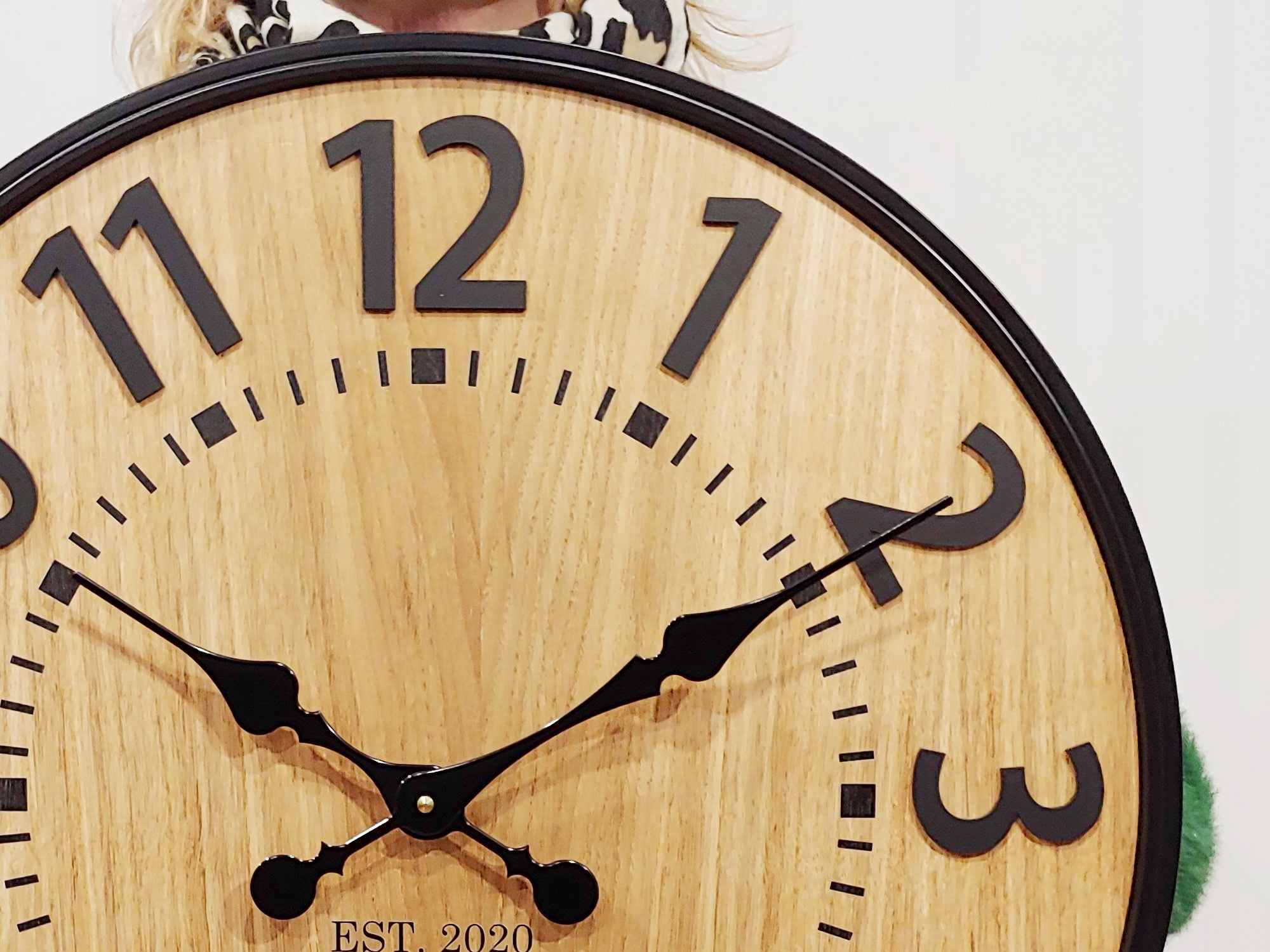 Zegar wykonany jest z 100% naturalnego fornirowanego dębu na warstwie playwood. Warstwa tarczy jest 100% dębowa- dlatego nie ma dwóch takich samych zegarów. Każdy zegar ma INNE SŁOJE - WZÓR DREWNA.