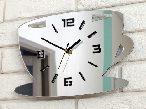 KWARCOWY ZEGAR ŚCIENNY - FILIŻANKA 3D LUSTRO- ULTRA CICHY