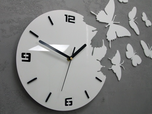 Zegar wykonany ze szkła akrylowego PMMA POŁYSK. Szkło akrylowe posiada nowoczesny estetyczny wygląd, jest lżejsze i wielokrotnie mocniejsze od szkła naturalnego. Jest bardzo dekoracyjne i świetnie odbija światło słoneczne. Dzięki odporności na promieniowanie UV oraz warunki zewnętrzne nie wymaga specjalnej konserwacji i bardzo długo utrzymuje swoje właściwości.