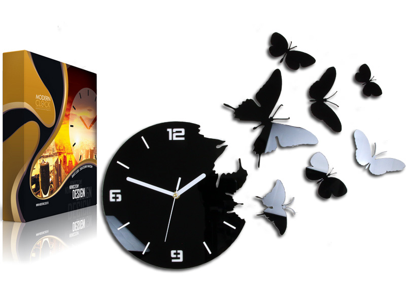 KWARCOWY ZEGAR ŚCIENNY - MOTYLE 3D NIESAMOWITY EFEKT 7 MOTYLI Z ULTRA CICHYM MECHANIZMEM