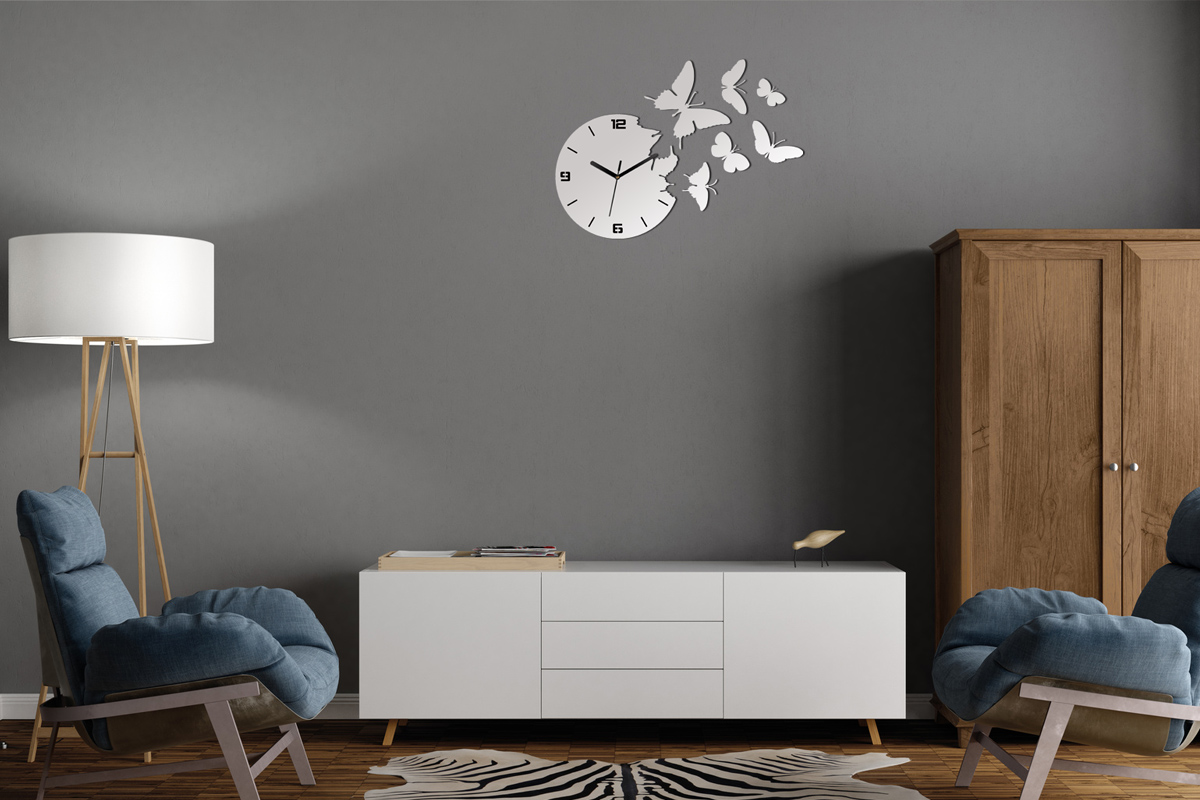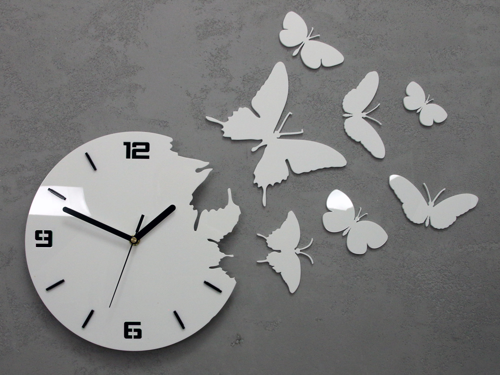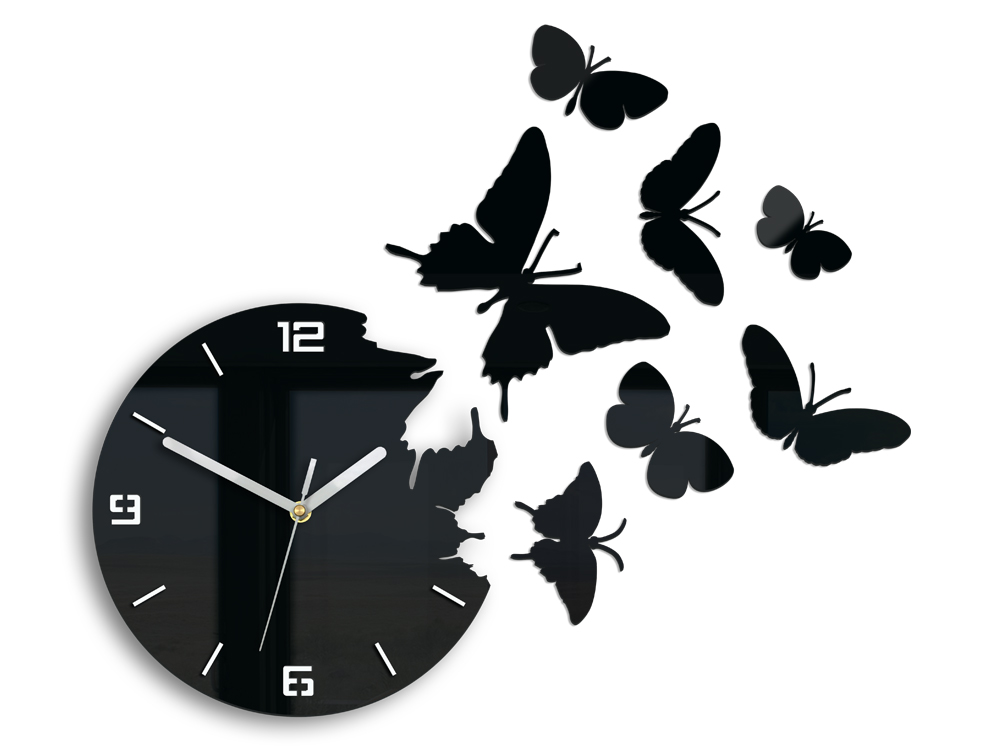 Zegar ścienny MOTYLE 3D - ULTRA CICHY SUPER KOLORY