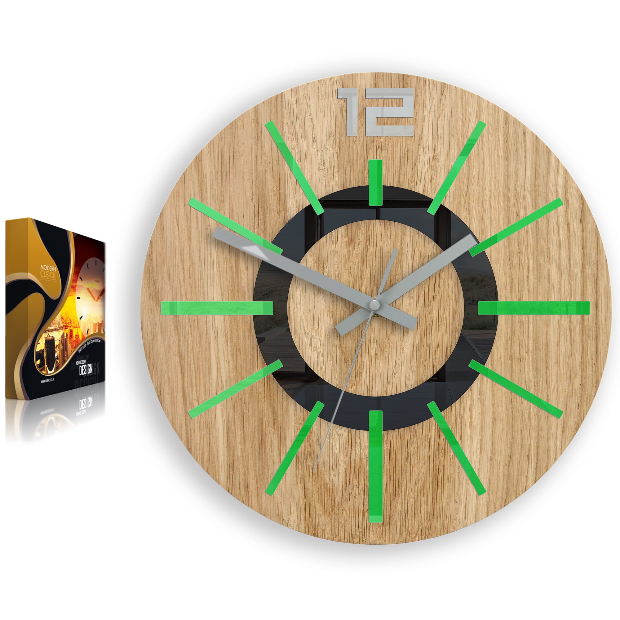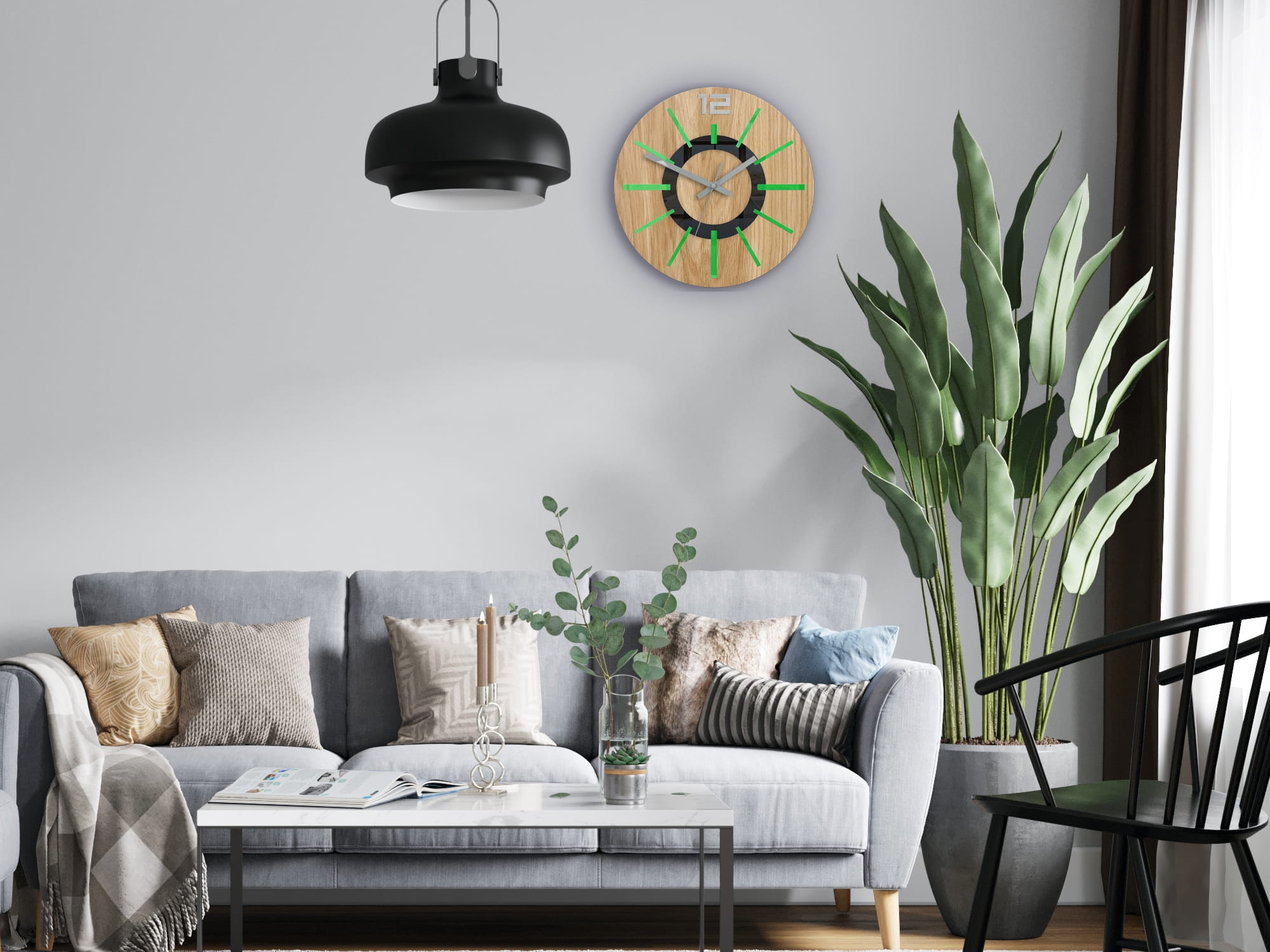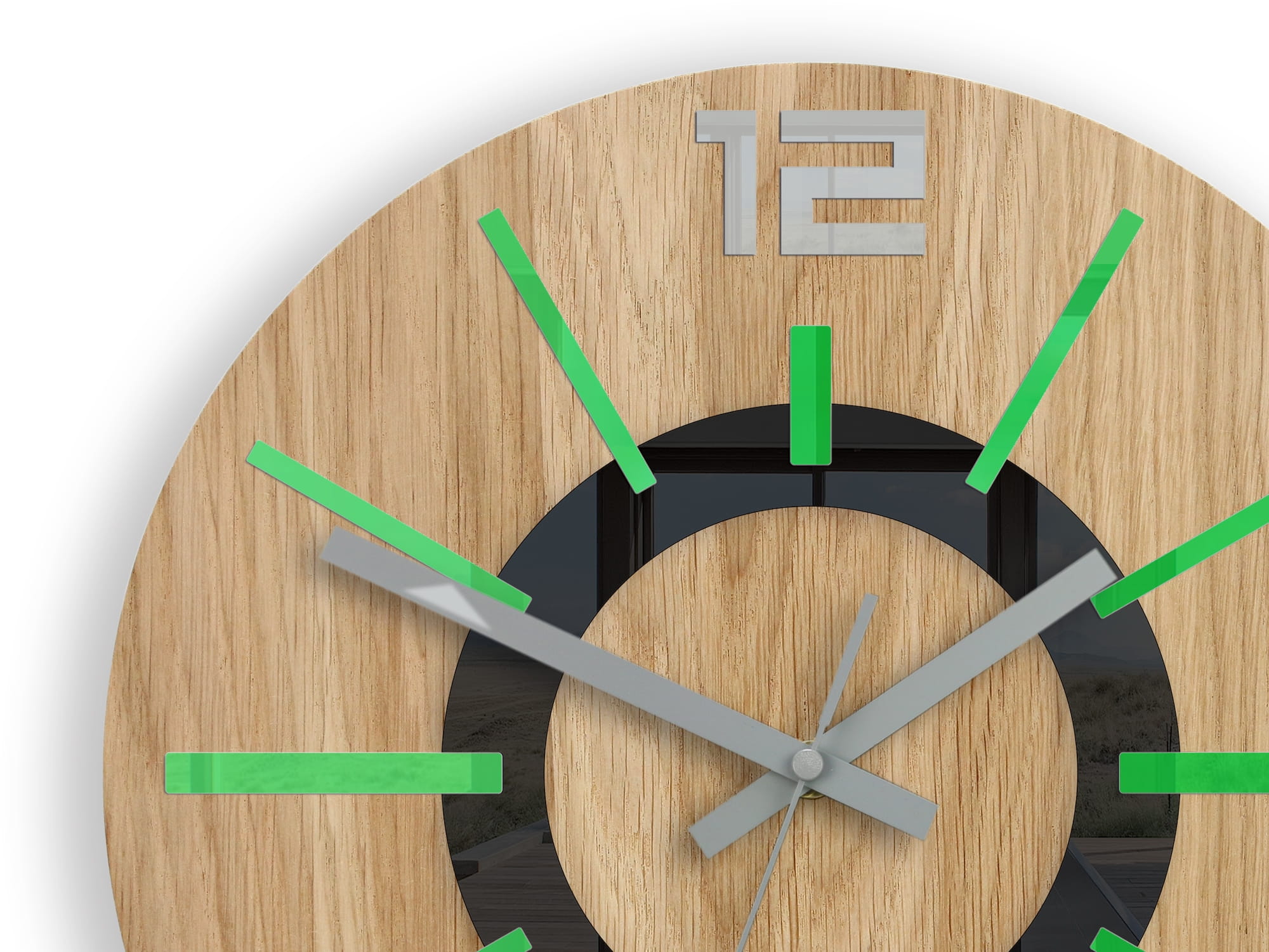 Zegar Nordic z najnowszej kolekcji zegarów drewnianych wykonany jest z najwyższą starannością o najdrobniejsze szczegóły. Duży bo aż 33 centymetrowy masywny zegar w klasycznej formie został ciekawie połączony kolorystycznie. Całość zegara została dopełniona wskazówkami w kolorze szarym.