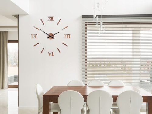 Montaż zegara jest szybki i wygodny. Tarcza ze wskazówkami jest do zamontowania na haczyk. Elementy dekoracyjne montuje się do ściany za pomocą taśmy montażowej. Każdy element jest podklejony taśmą. Zegar posiada szablon- dzięki niemu w precyzyjny sposób rozmieścisz elementy na ścianie.